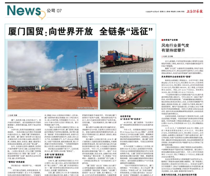 上海證券報(bào) | 廈門國貿(mào):向世界開放 全鏈條“遠(yuǎn)征”。